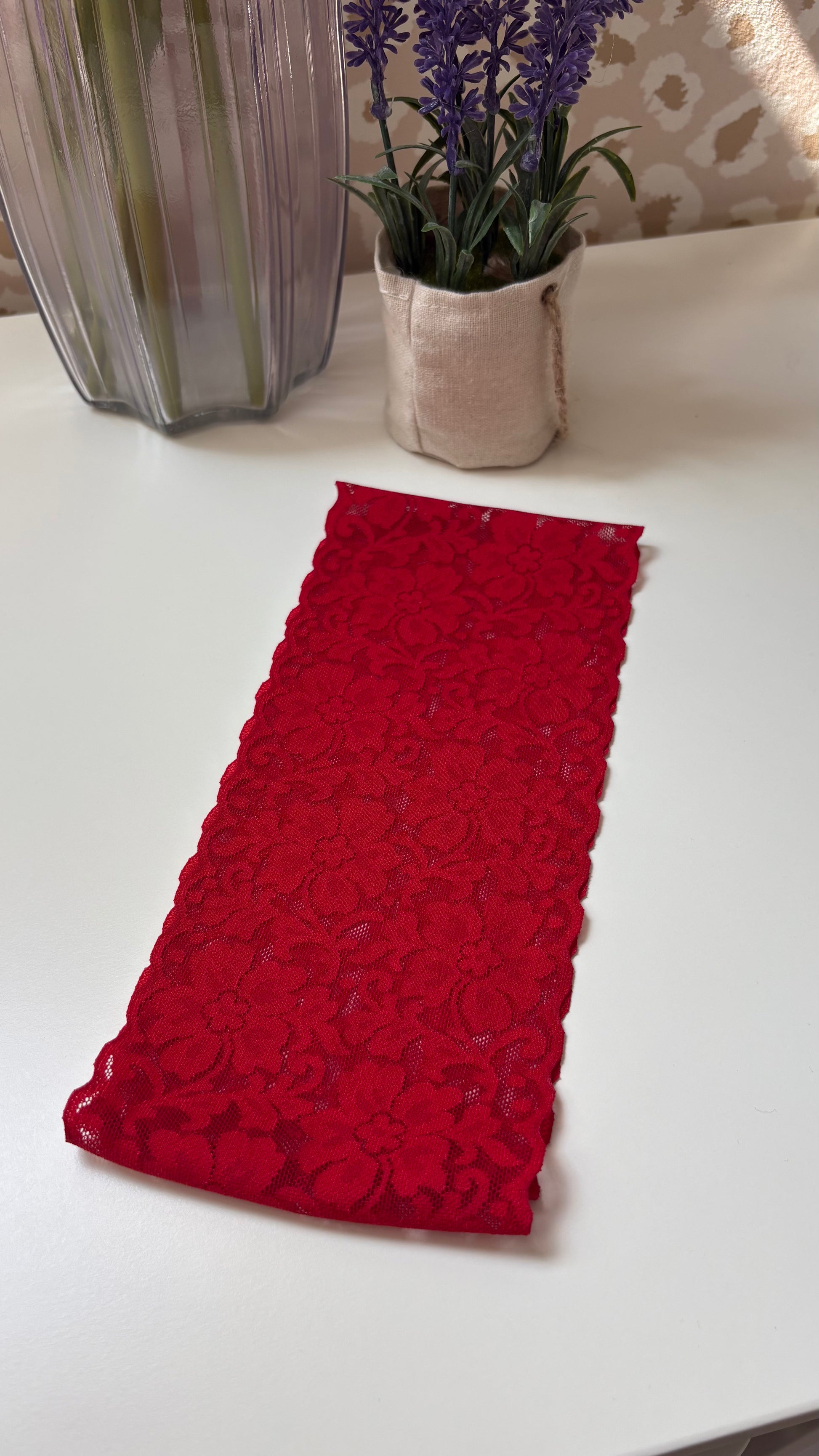 Bandeau pour les cheveux ALBERTINE - dentelle rouge.