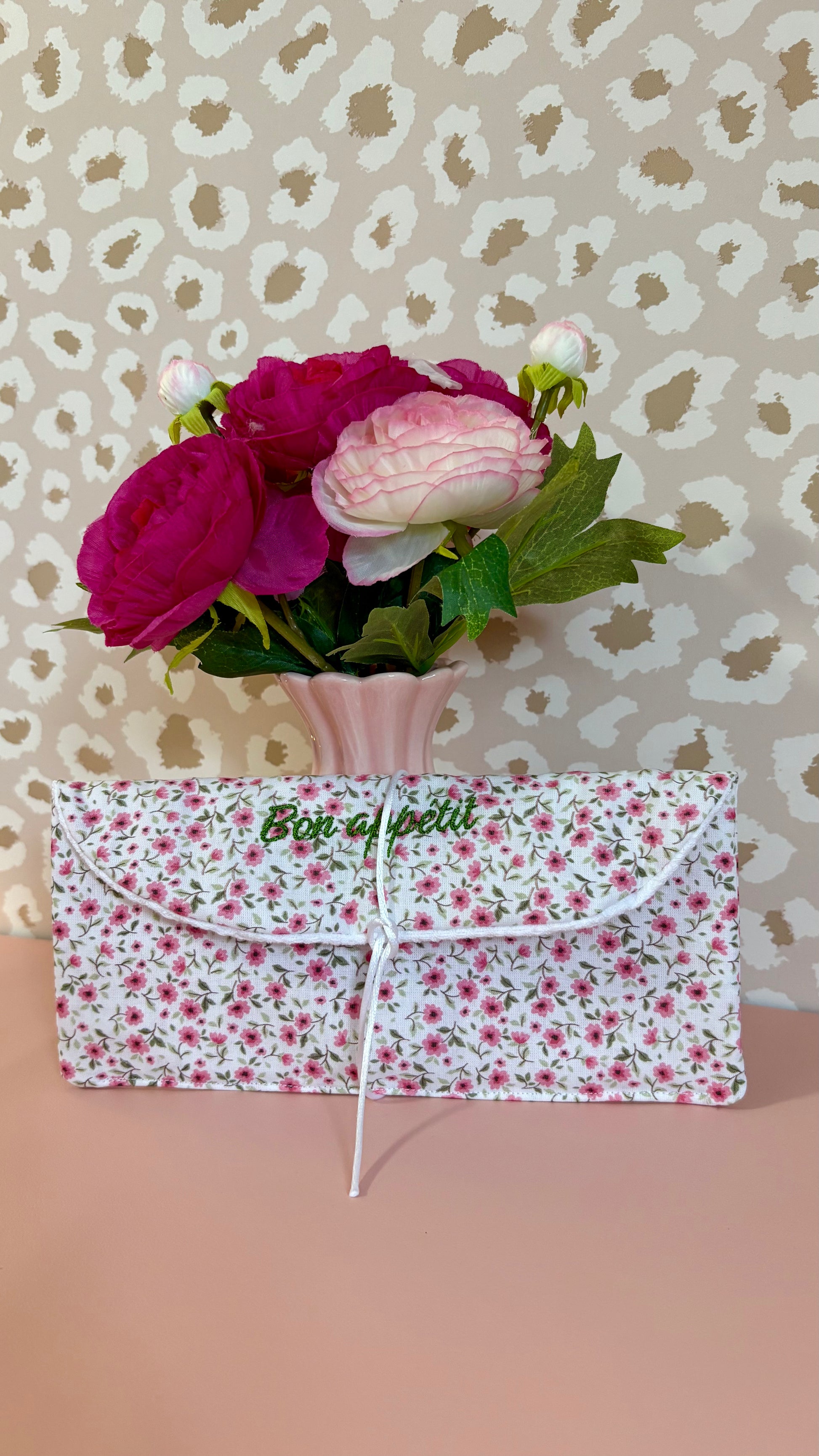 Pochette à couverts réalisée à la main.