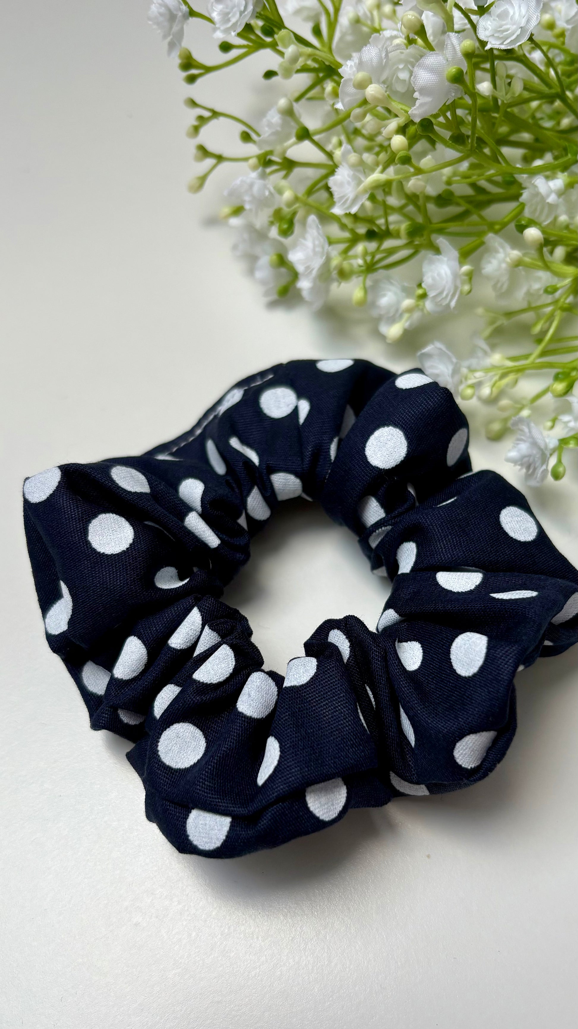 Chouchou CINDY - bleu marine à pois blanc