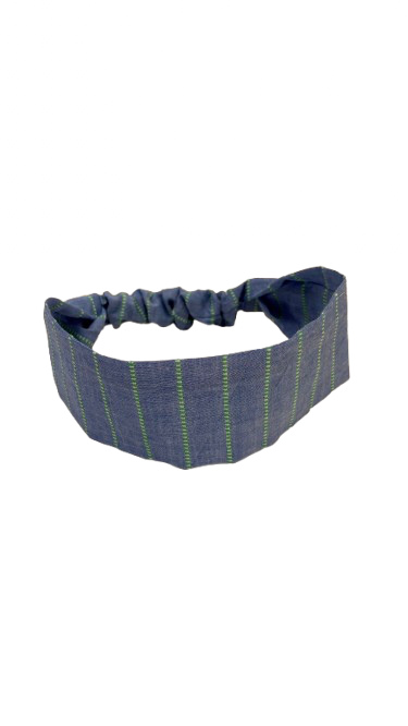 Bandeau MARINA - fait à la main bleu avec des rayures brodés vertes