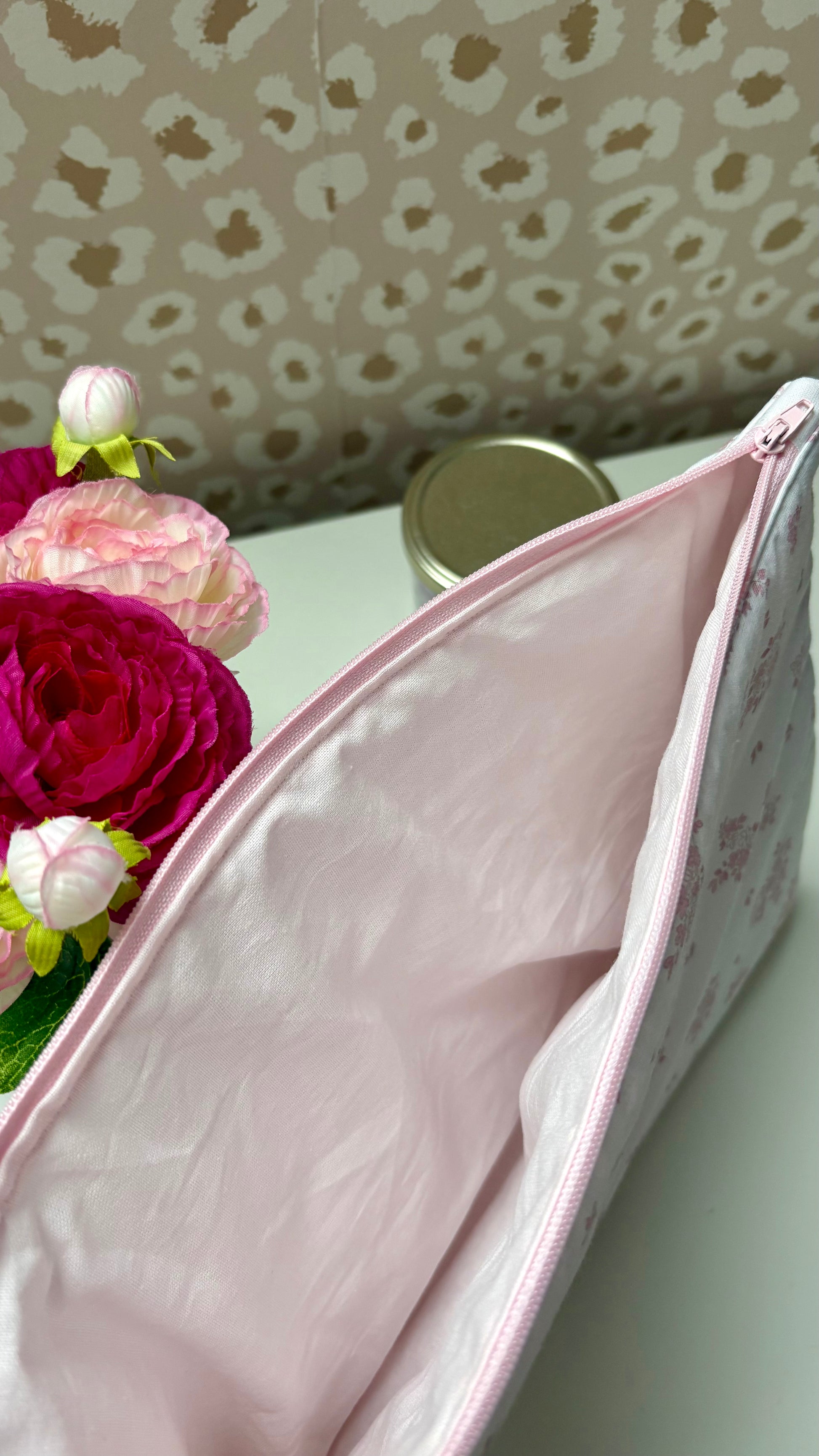 - Extérieur : tissus PENELOPE blanc avec motifs rose